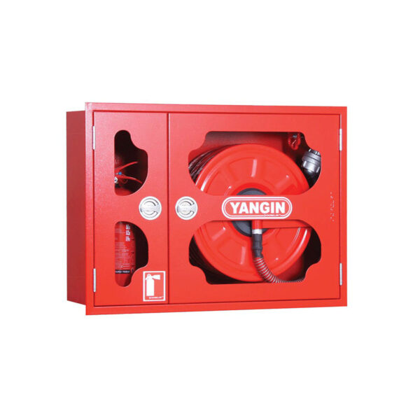 - Sağ veya sol üst veya alt girişli 1″ kauçuk hortumlu yangın dolabı.